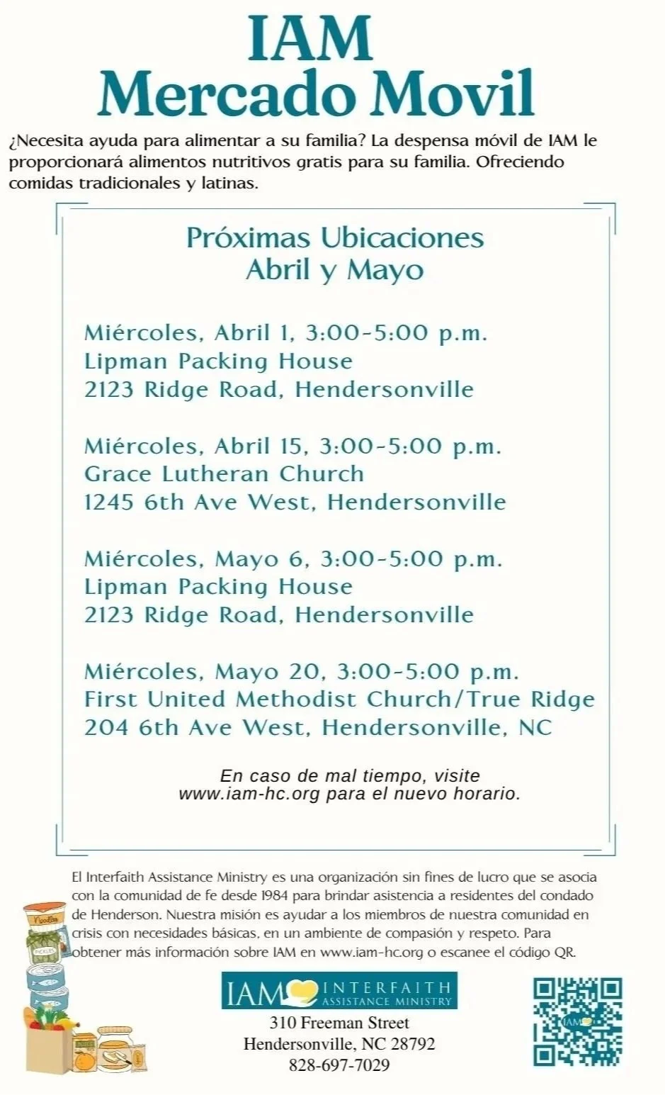 ¿Necesita ayuda para alimentar a su familia? La despensa móvil de IAM le proporcionará alimentos nutritivos gratis para una semana por cada miembro de su familia. Ofreciendo comidas tradicionales y latinas.